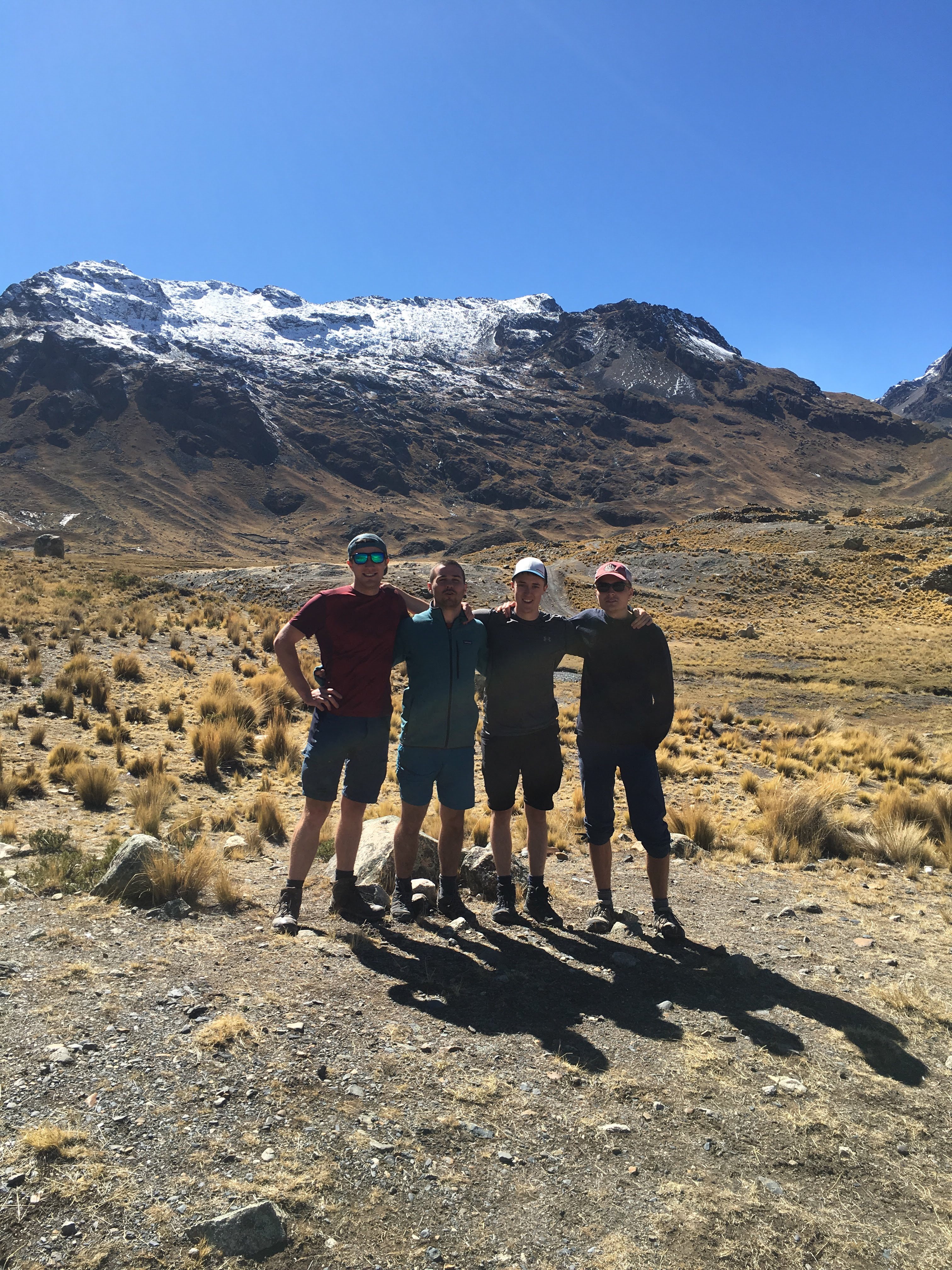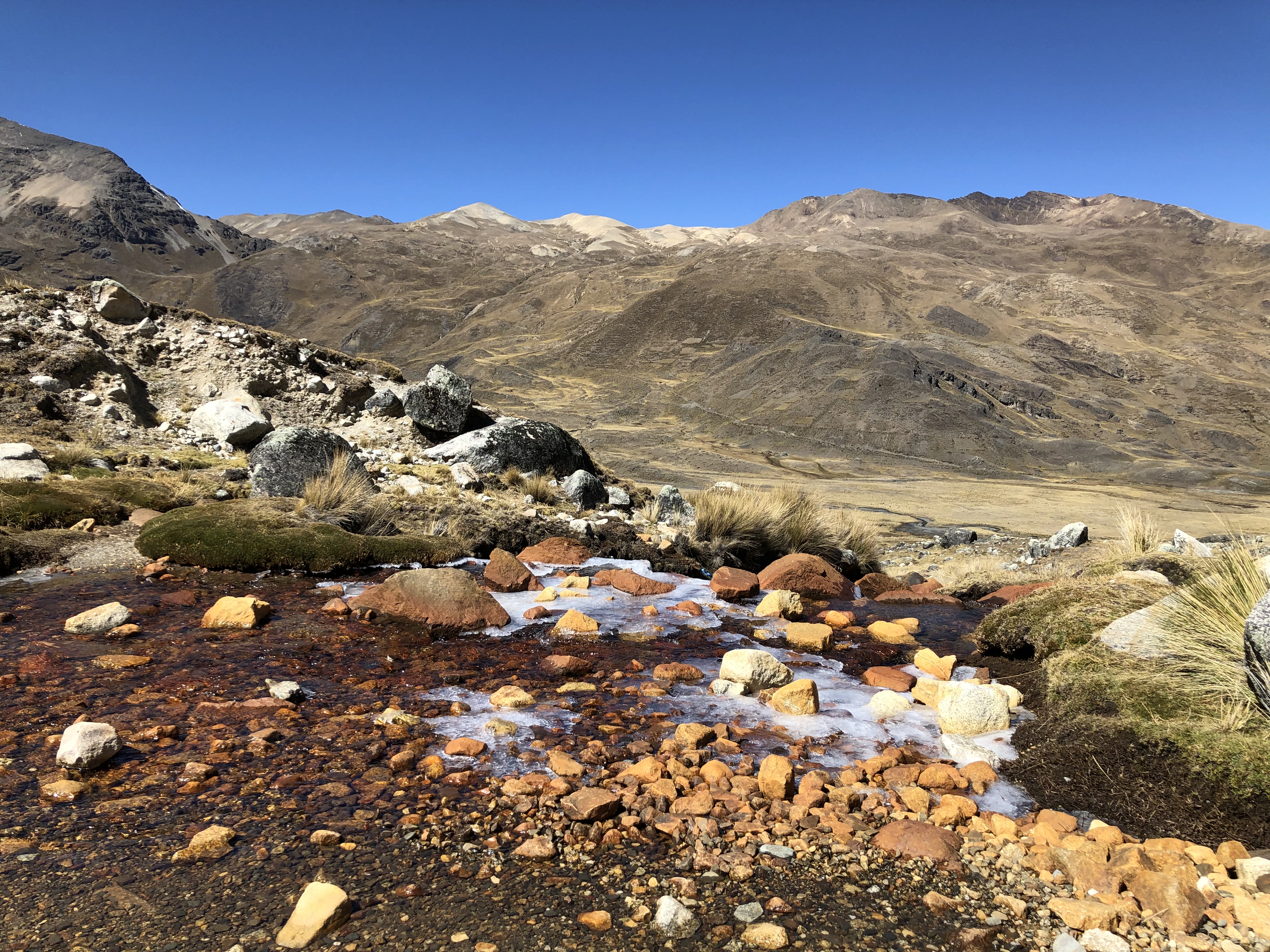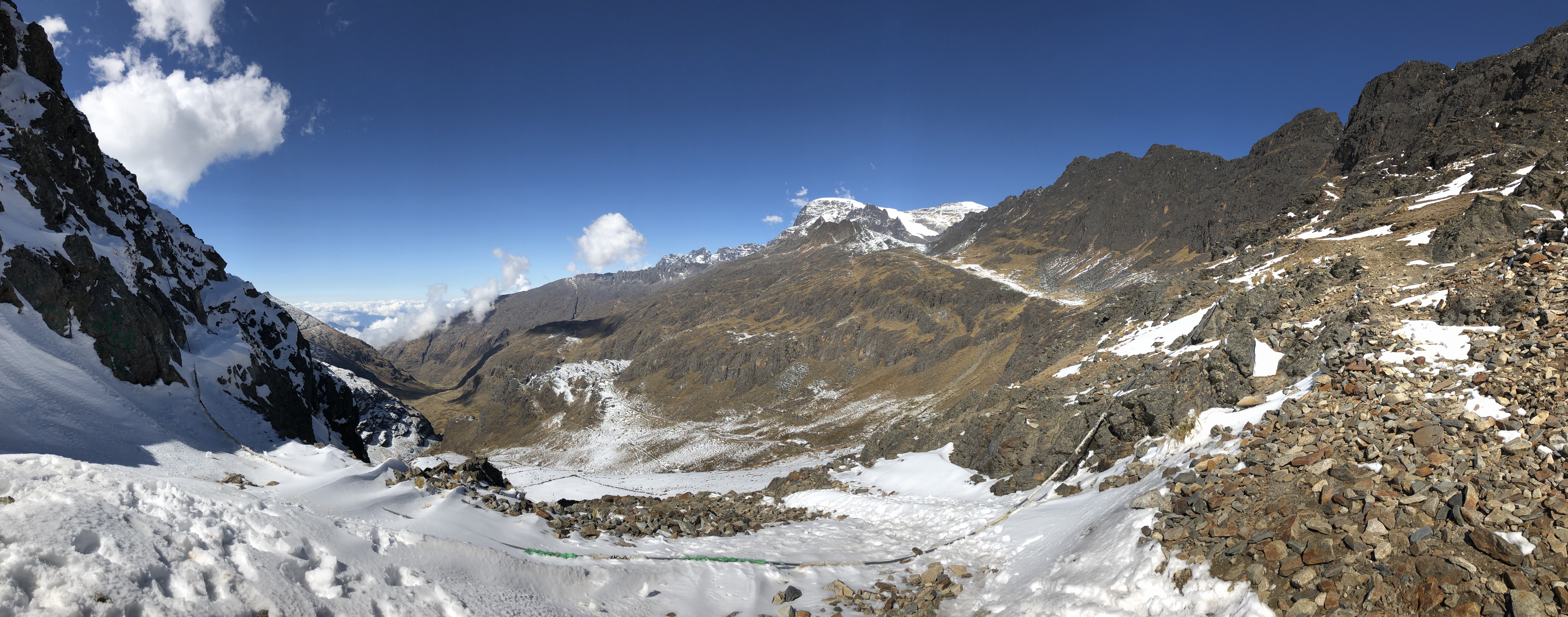 Also saw some large gliding birds. Lyle, Joe and Alex had walked ahead a bit to push on towards the campsite for the night, whilst jodh was a little behind. Without another human in site, a black dog came sprinting at me from the distance with its mouth open. Alone in the Andes, on a trail which isn’t too common (Lyle’s parents did it years ago, and named lyles sister Takesi after the trail, so Lyle knew about the trail and suggested it), I was thinking “The dog is probably nice, most dogs are, but what if it’s not and has rabies or trying to protect the llamas?”. I picked up a rock for the small chance I had to protect myself against a rabid dog. After the dog reached me and wanted nothing more than to be fussed, to my delight and relief, I put the rock down and gave it all the attention it wanted.