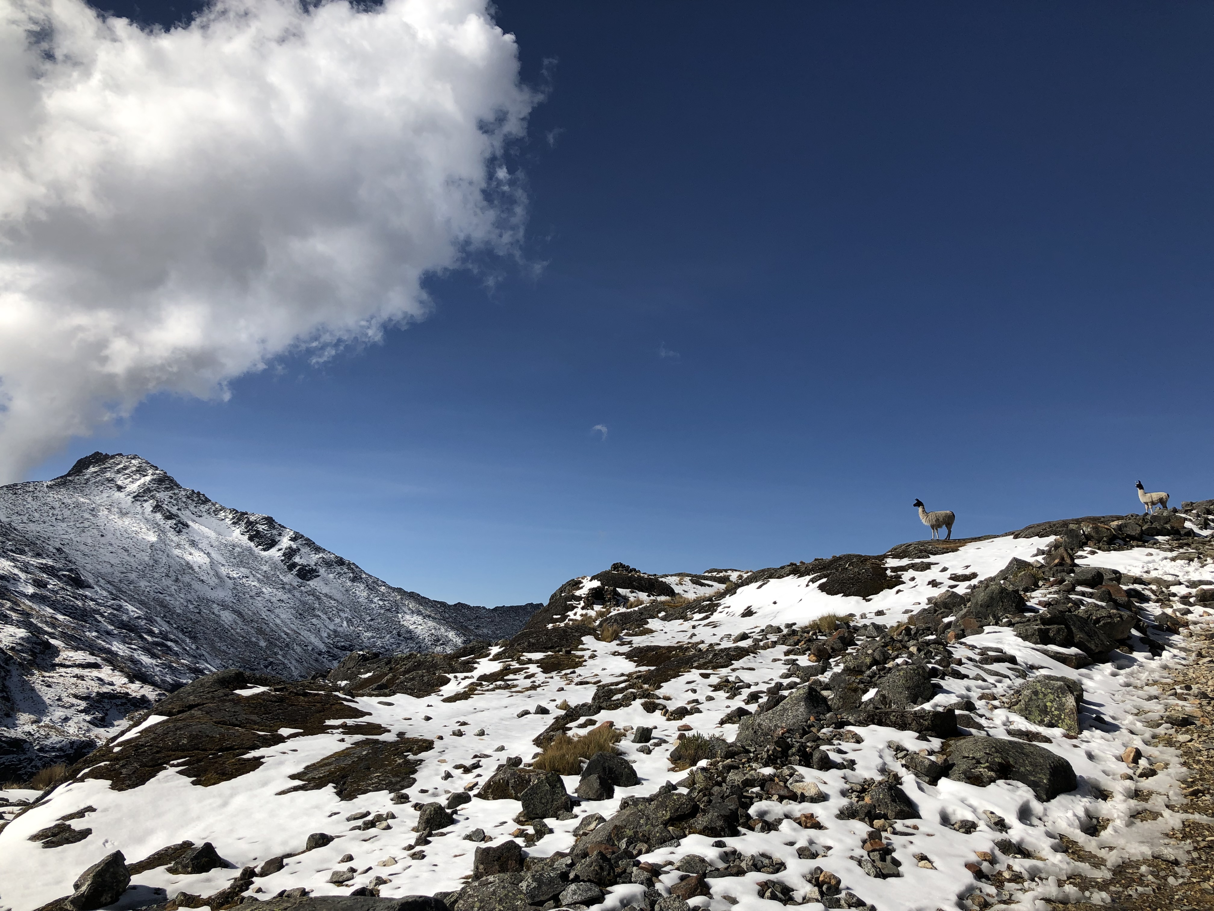 The top of the climb had us going through a foot of snow, where we were greeted by two llamas at the top. After staying at the top for around 20mins, we began the descent.