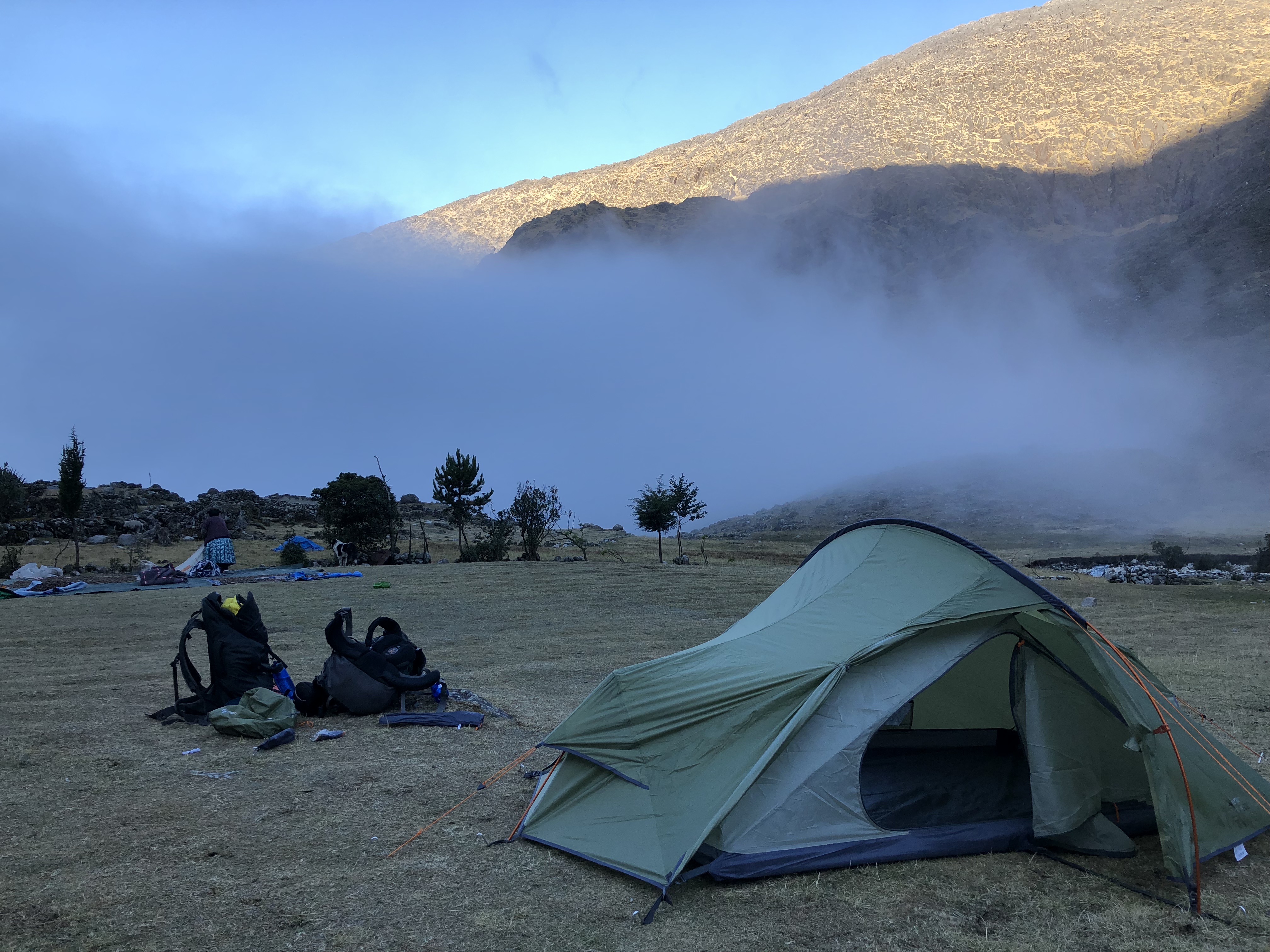 Walking through the valley down towards the clouds, I arrived at the small hamlet of takesi, where Joe, Lyle and Alex had started putting up the tents. The family who lived here had a very nice collie who their small (maybe 3 or 4 year old) son and daughter were just running round playing with for several hours until about 9pm.