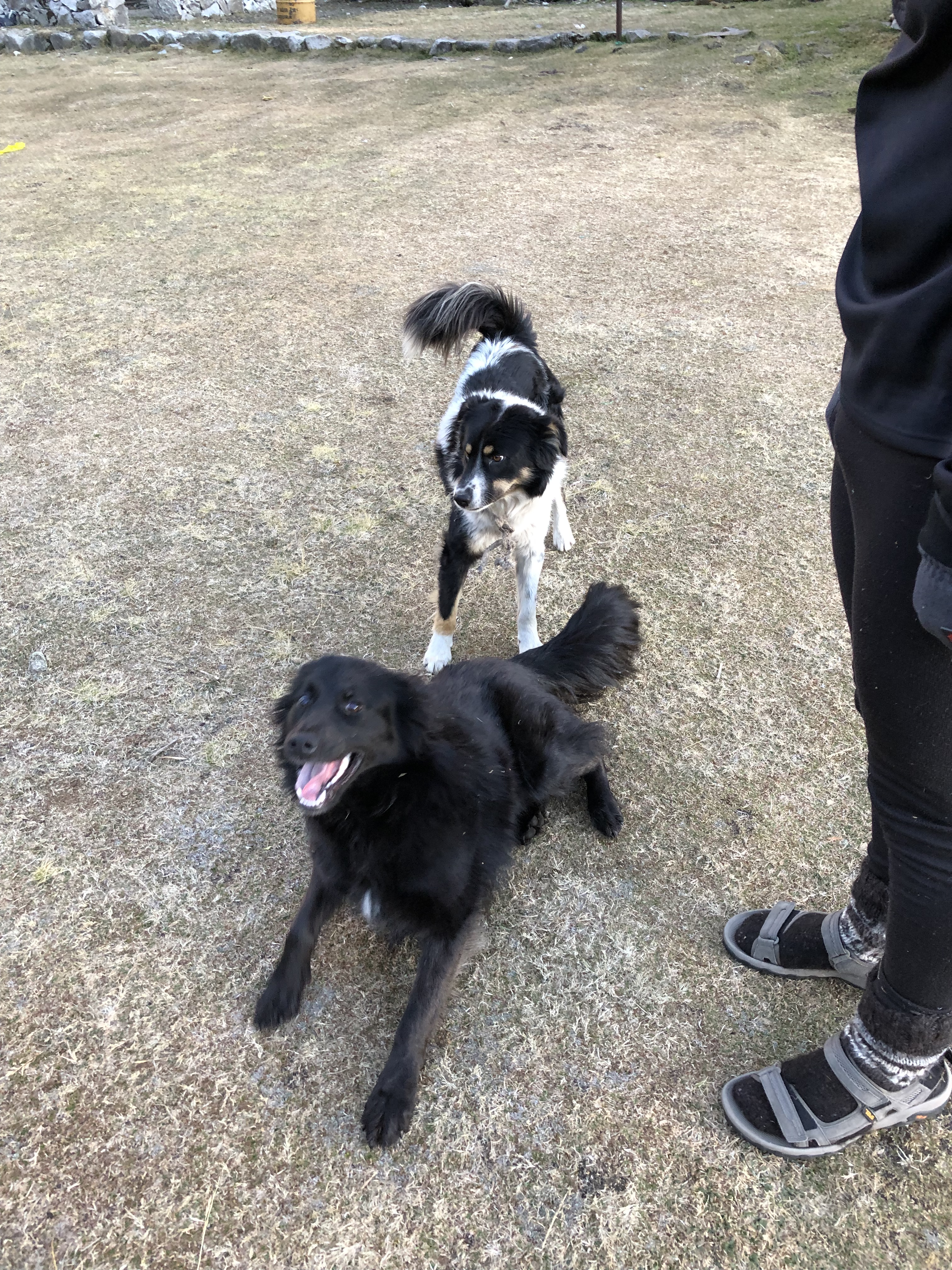 The next morning we got up at about 7am to make porridge, pack up camp and head off. The kids were already out at this time playing with the dog, as well as the black dog I had met the day before! – Not a bad life running around in the hills with dogs all day! The black dog had taken a liking to us, and followed us for the first 20mins or so of the descent.