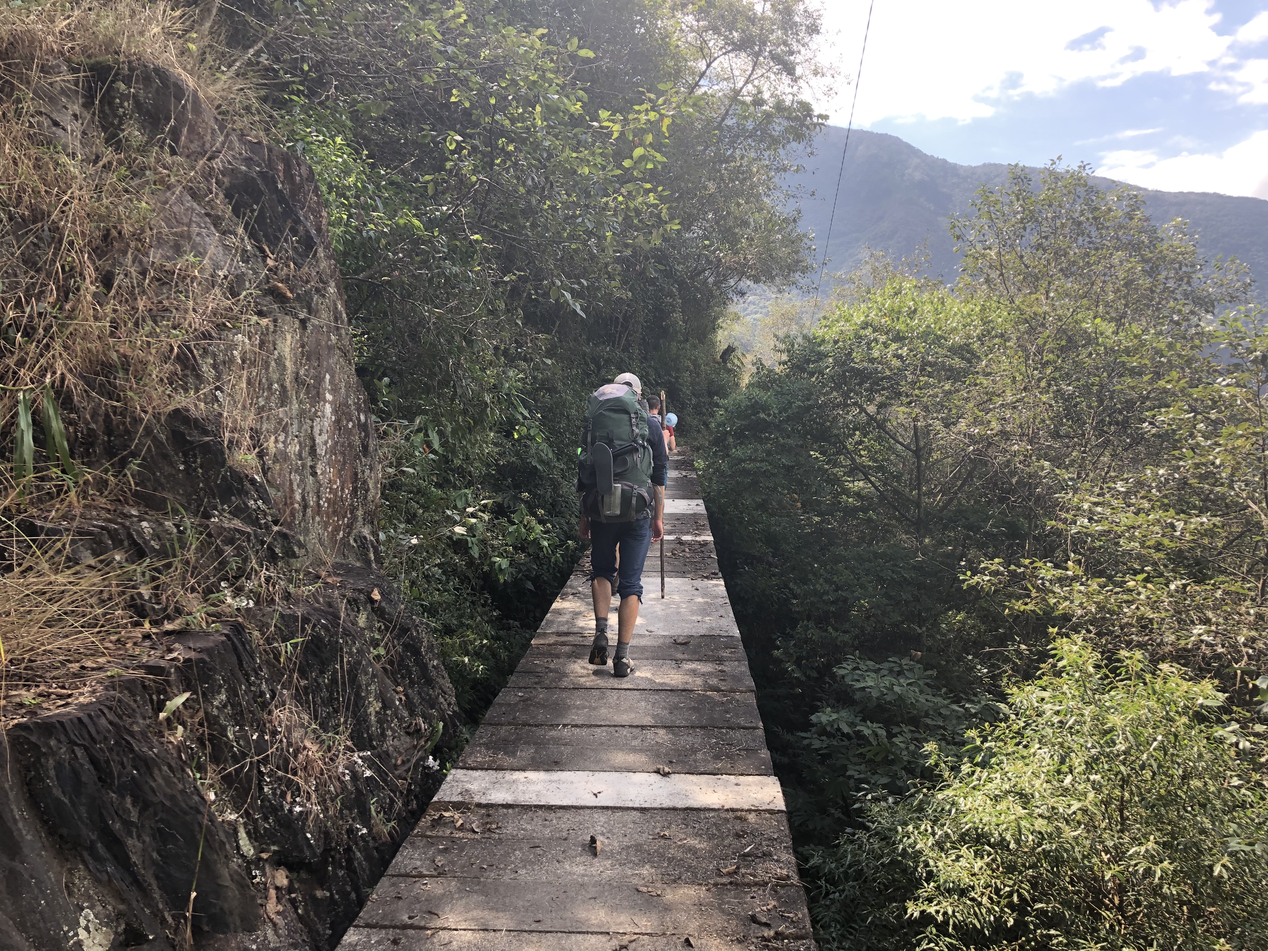 After walking through cloud, as we began losing altitude the scenery started to change, with the mountains supporting forest. We walked along paths on the edge of the mountain, taking in the views. There were a couple of small farms/houses we passed way up in the hills – it made me think of how much effort it would have took to get the materials up there to build.